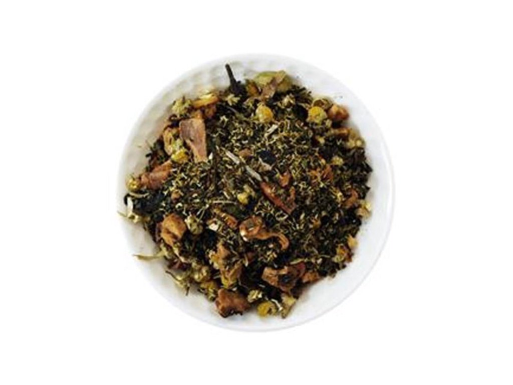 Zloženie: kúsky jablka, kvety harmančeka, kúsky rohovníka, listy žihlavy, škorica, muškátový oriešok, zázvor, hrebíček, kardamom, aníz, prírodná aróma