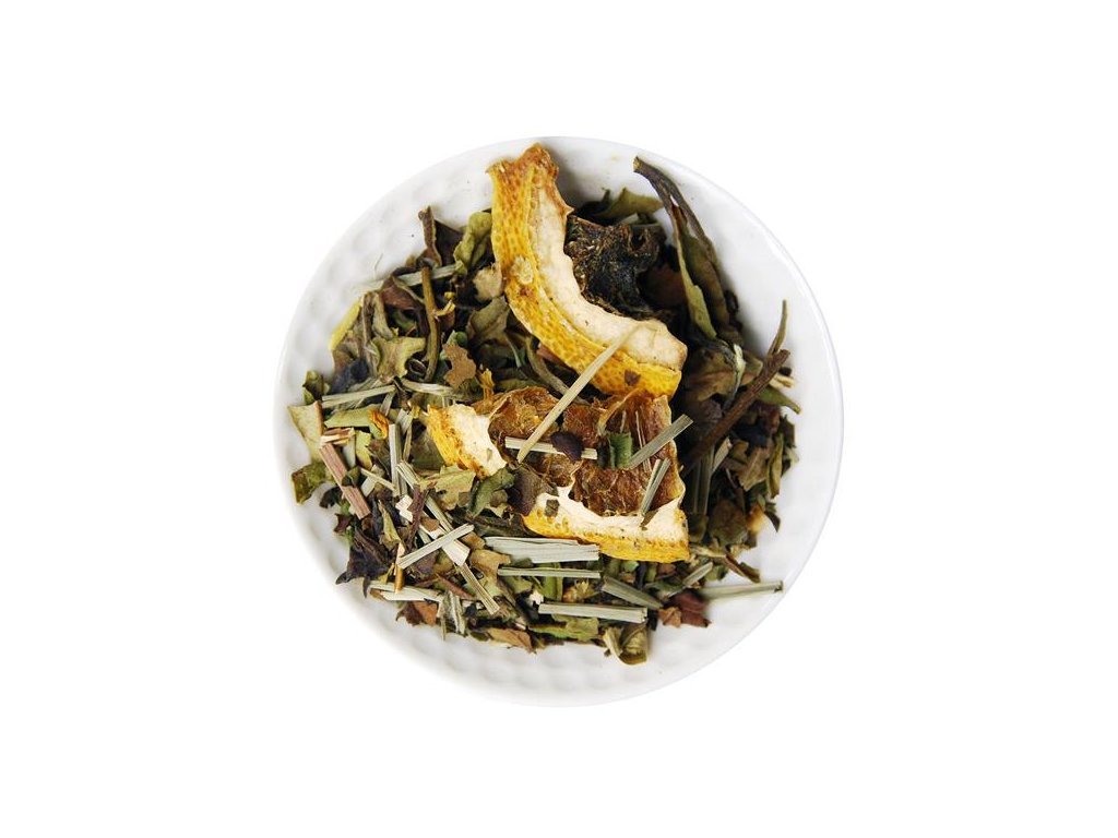 Zloženie: biely čaj Shou Mee a Pai Mu Tan White, medovka, pomarančové a citrónové plátky, citrónová tráva, kvety slnečnice, aróma.
