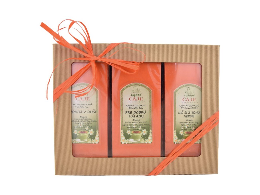 Darčekové balenie dvoch bylinných a jedného ovocného čaju.