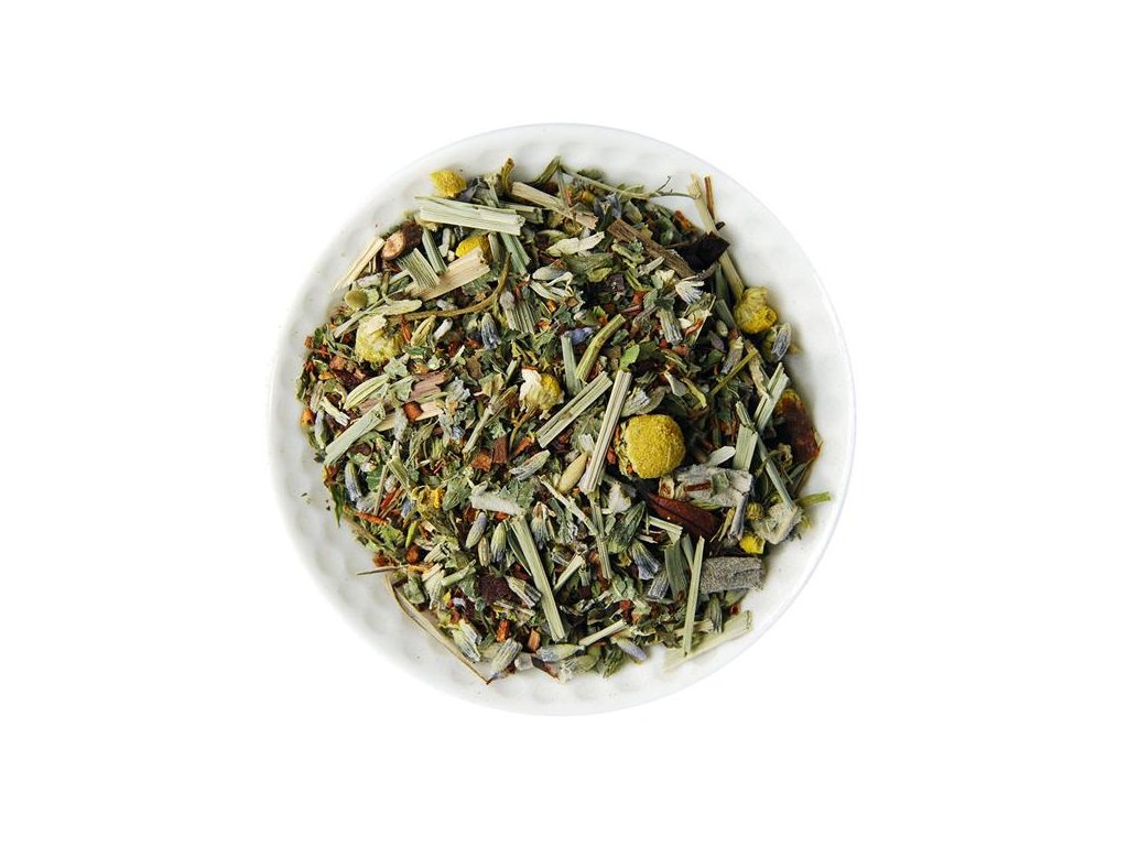 Zloženie: Honeybush 22,5%, Rooibos massai 20%, mäta, rumanček kamilkový kvet, fenikel plod, citrónová tráva, medovka, šalvia vňať, levanduľa kvet.