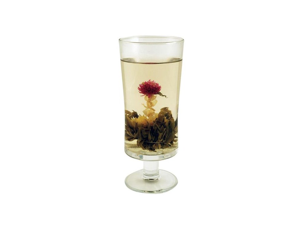 Ručne viazaný zelený čaj, ktorý po zaliatí a rozvinutí lístkov doslova rozkvitne.