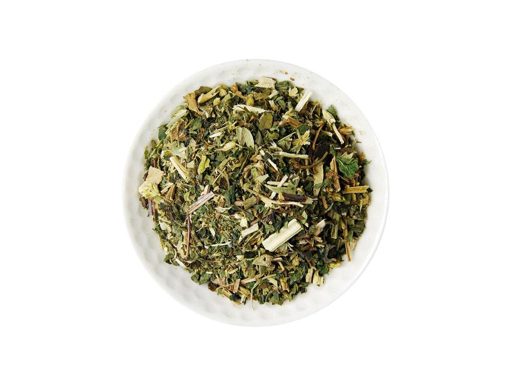Zloženie: žihľava list, medovka vňať, zlatobyľ vňať, brusnica list, rebríček vňať