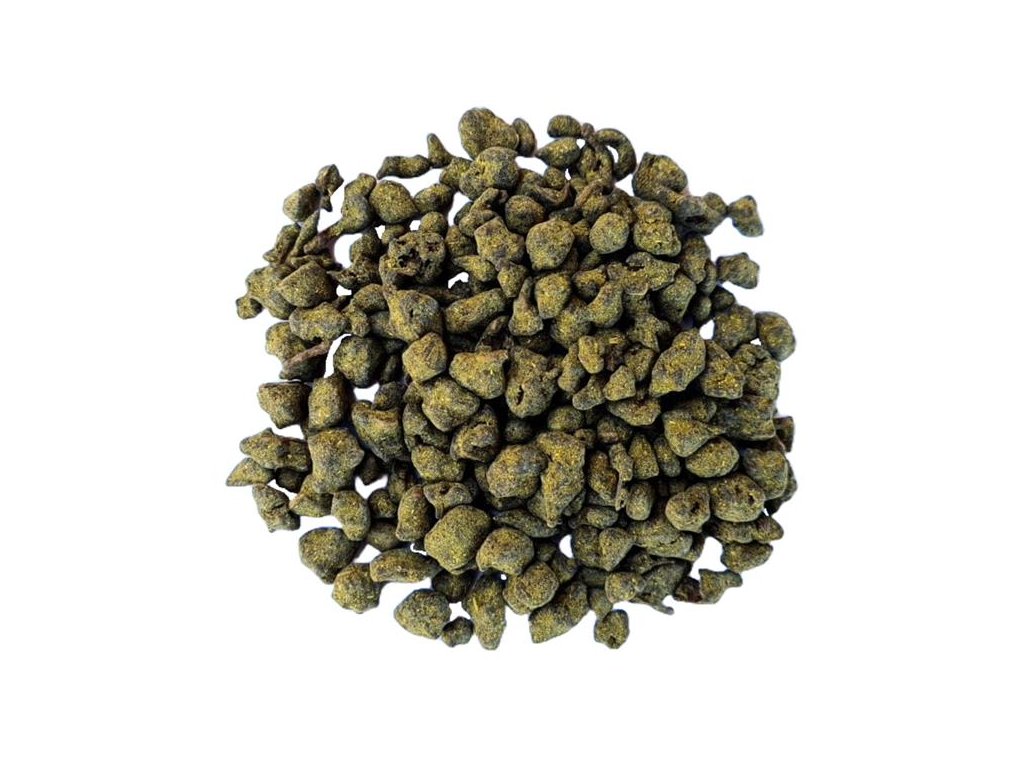 Wu-long zelenšieho typu. Drobné, pevne zvinuté lístky, ktoré sa po spracovaní obalia v mletom koreni ženšenu.