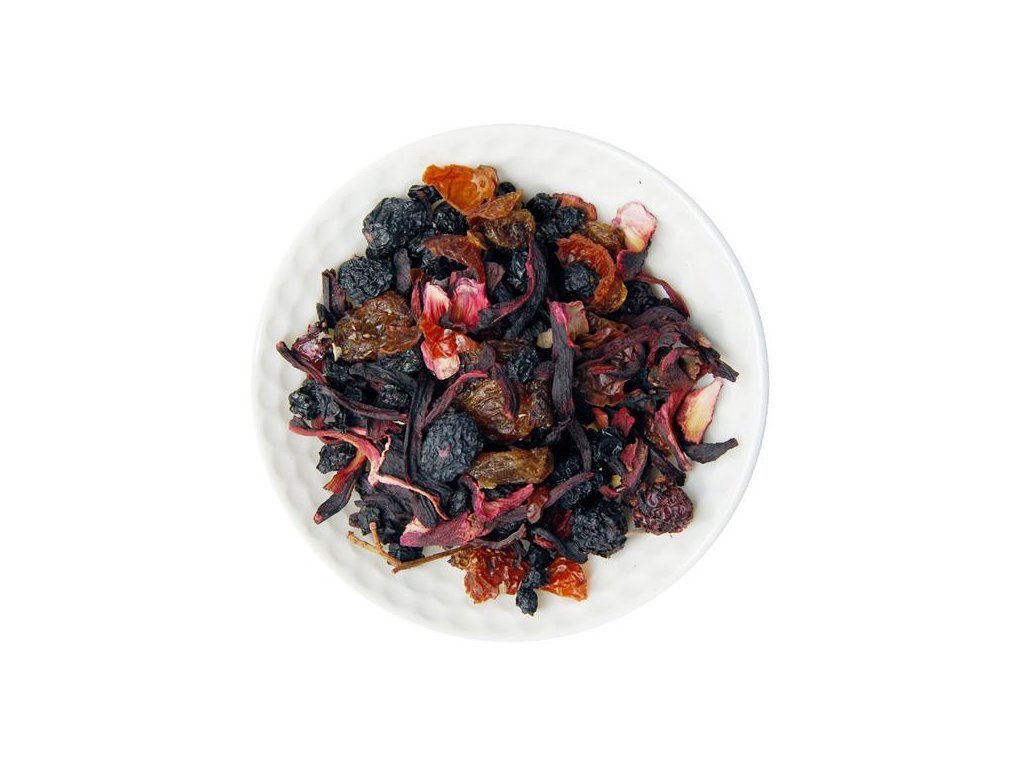 Zloženie: šípky, plod bazy čiernej, čučoriedky, čierna jarabina, ibištek, hrozienka (slnečnicový olej, hrozienka), listy a plody ostružiny, aróma