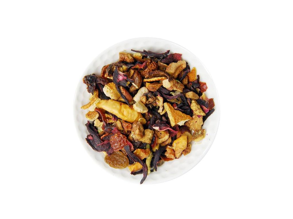 Zloženie: šípky, ibištek, jablko, pomarančová kôra, hrozienka (hrozienka, slnečnicový olej), kvety ruže, slamiha piesočná, klinček, kardamóm, aróma