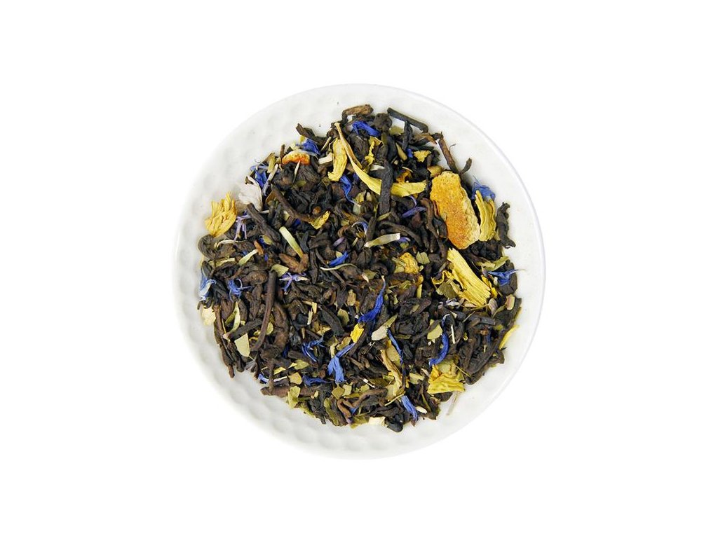 Zloženie: Pu-Erh 69,9%, Mate 20% , pomarančová kôra, kvety slnečnice a nevädze poľnej, aróma