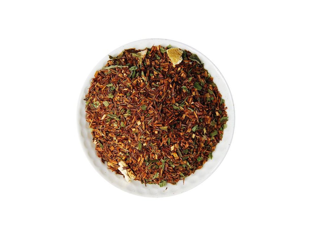 Zloženie: Rooibos Massai 89%, citrónová kôra, marocká mäta, jablko, aróma