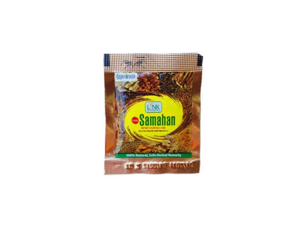 Samahan ajurvédsky bylinný čaj je prírodný bylinný prípravok, ktorý prináša rýchlu úľavu od príznakov nachladenia, kašľu, nádchy i bolesti hlavy. Skladá sa zo 14 liečivých bylín, jeho receptúra bola vyvinutá podľa tradičných princípov Ajurvédy.