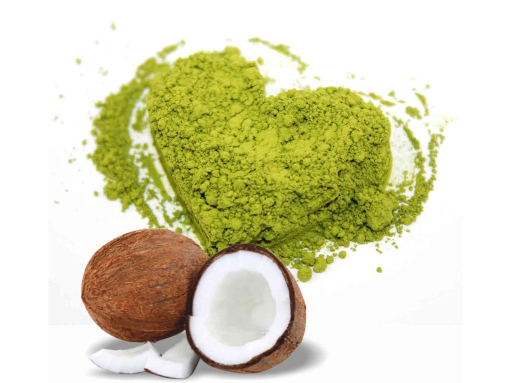 Zloženie: mletý zelený čaj Matcha, aróma kokos 4%