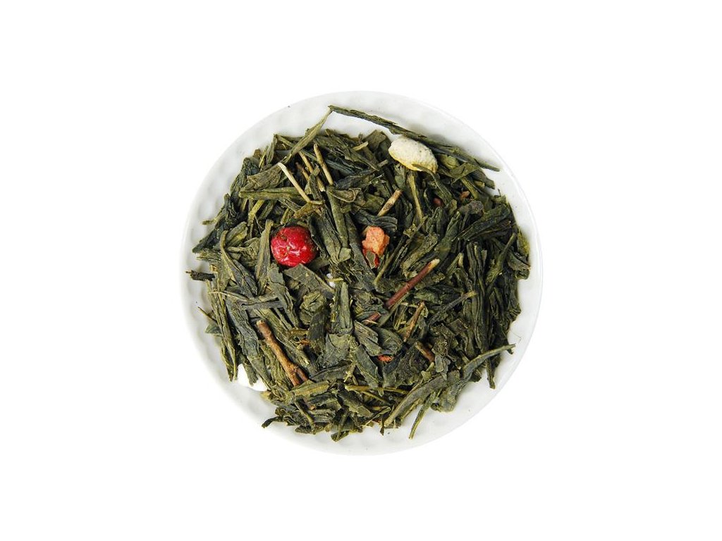 Zloženie: zelený čaj China Sencha, kúsky marhule /marhuľa, sušená ryžová múka, oxid siričitý/, citrón, ríbezľa, pomarančová kôra, jahody, aróma